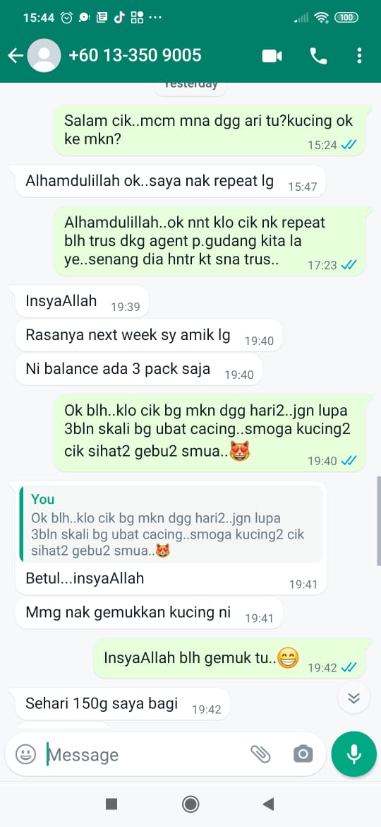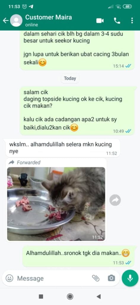 Kadang-kadang tu tengok kurus je mak kucing tu sebab kena susukan anak tanpa henti. Serious talk kalau kita bagi je QV MEAT ni memang bertenaga je Si BULUS